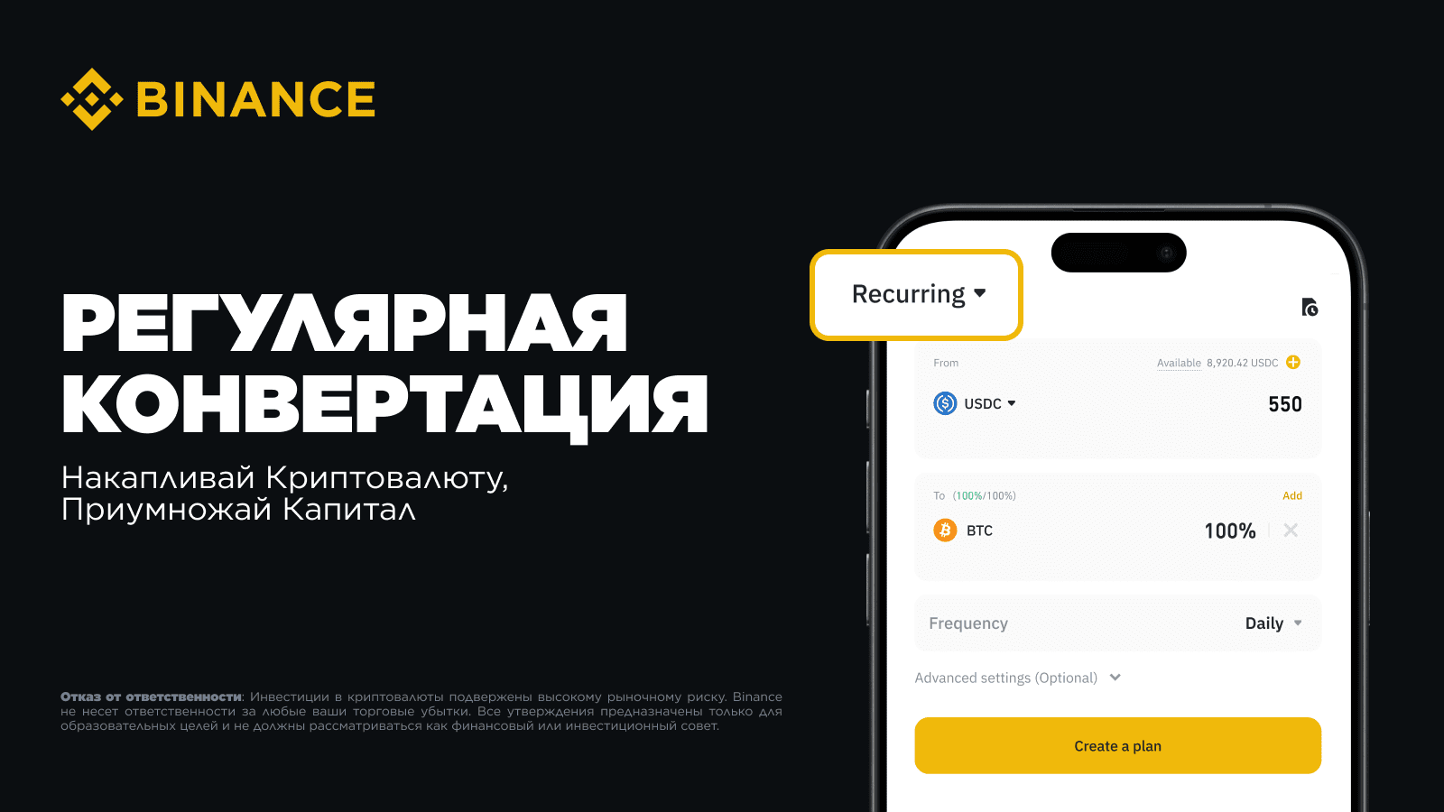 Предупреждение о рисках. Цены цифровых активов волатильны и связаны с высоким рыночным риском. Стоимость инвестированных средств может увеличиваться и уменьшаться. Вы можете не вернуть инвестированные средства. Вы несете полную ответственность за свои инвестиционные решения. Binance не несет ответственность за ваши возможные убытки. Показатели в прошлом не являются гарантией эффективности в будущем. Вы должны инвестировать только в известные вам продукты и понимать связанные с ними риски. Прежде чем инвестировать средства, вы должны оценить свой инвестиционный опыт, финансовую ситуацию, инвестиционные цели и уровень допустимого риска, а также обратиться к независимому финансовому консультанту. Настоящий материал не следует рассматривать как финансовую рекомендацию. Более подробную информацию можно найти в Условиях использования и Предупреждении о рисках.