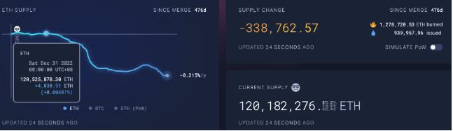С начала года количество Эфириумов сократилось со 120,5 миллионов до нынешних 120,1 миллионов. Всего за год было уничтожено 340 000 Эфириумов на сумму 750 миллионов долларов США. С приходом бычьего рынка объем разрушений обязательно значительно увеличится.