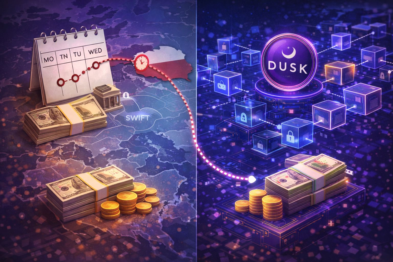 Кілька днів тому моя подруга намагалася перевести гроші родичам у Польщу. Банк сказав: «три робочі дні». Три дні. У світі, де фотографія летить на інший континент за секунду, гроші все ще подорожують днями. Це не технічна проблема — це наслідок старої архітектури. #Dusk показує, що можлива інша модель, де час транзакції не залежить від календаря.