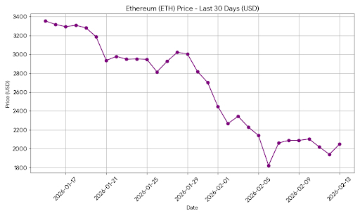 Эфириум, который когда-то торговался значительно выше $3,000, сталкивается с renewed downside pressure около $1,900–$2,000.