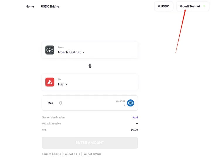 https://usdcdemo.layerzero.network/bridge Используйте сетевую транзакцию Goerli Testnet: