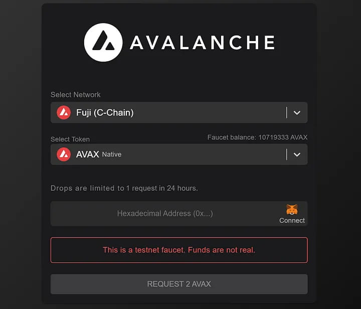 AVAX Faucet: faucet.avax.network — токен, используемый для обмена и газа. Выберите USDC и AVAX.