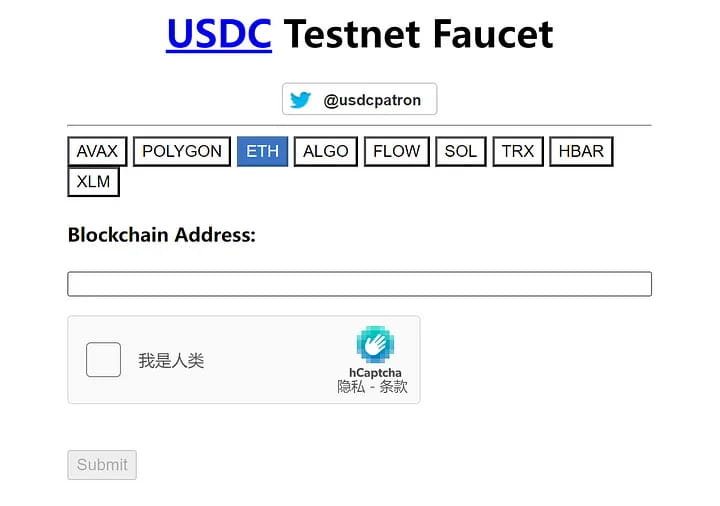USDC Faucet: usdcfaucet.com — токен, используемый для обмена.