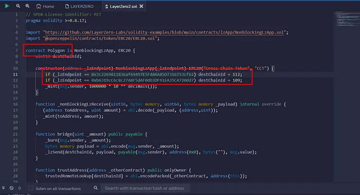 Контракт содержит Endpoint и ChainId сети, в которой мы будем развертывать контракт.