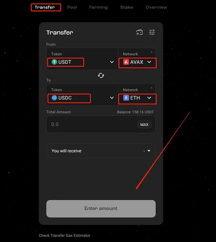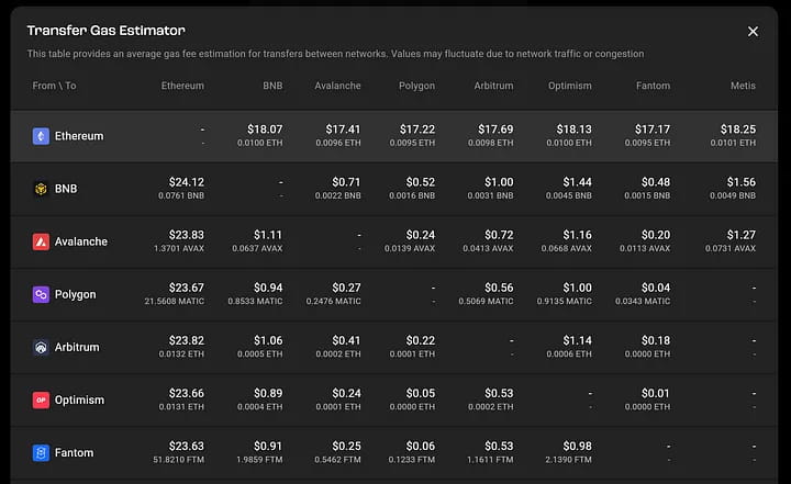 Перевод (Gas Estimator) также поможет вам сэкономить на комиссии за газ. Нажав «Проверить оценщик газа за перевод», вы увидите всплывающее окно со средней комиссией за газ для переводов между различными сетями.