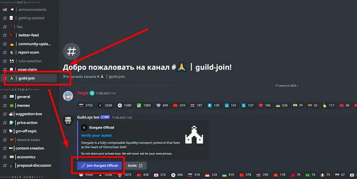 Зайдите в Гильдии и подключите свой кошелек MetaMask к Discord.