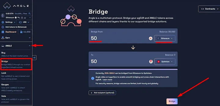 Токены Bridges $ANGLE или agEUR можно обменять на веб-сайте: