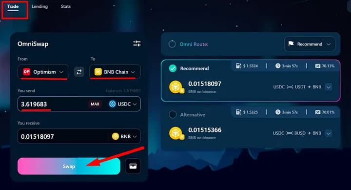 Подключите свой кошелек и выполните несколько межцепочных свопов
