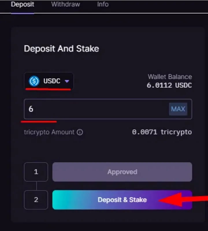 Используйте их хранилище, войдите в Хранилища, выберите Хранилища, вы можете увидеть, что «Ферма стейблкоинов» заполнена, как показано ниже: