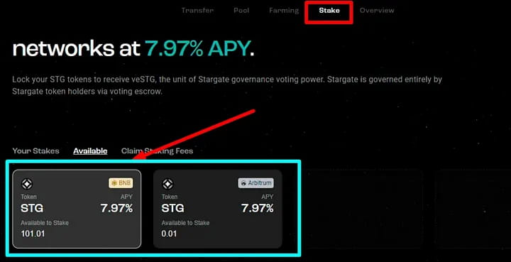 Srargate — это мост и основной проект протокола LayerZero. У Srargate есть собственный токен STG, который вы можете использовать для участия в голосовании.