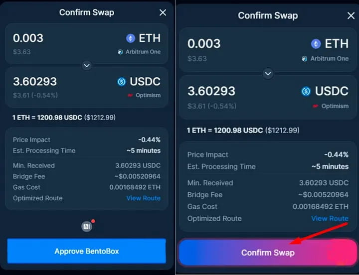 Кстати, вы можете обменять ETH на USDC Arbitrum на бирже выше (WooFi), что стоит 0,23U*3 транзакции (не используйте слишком большое кредитное плечо).