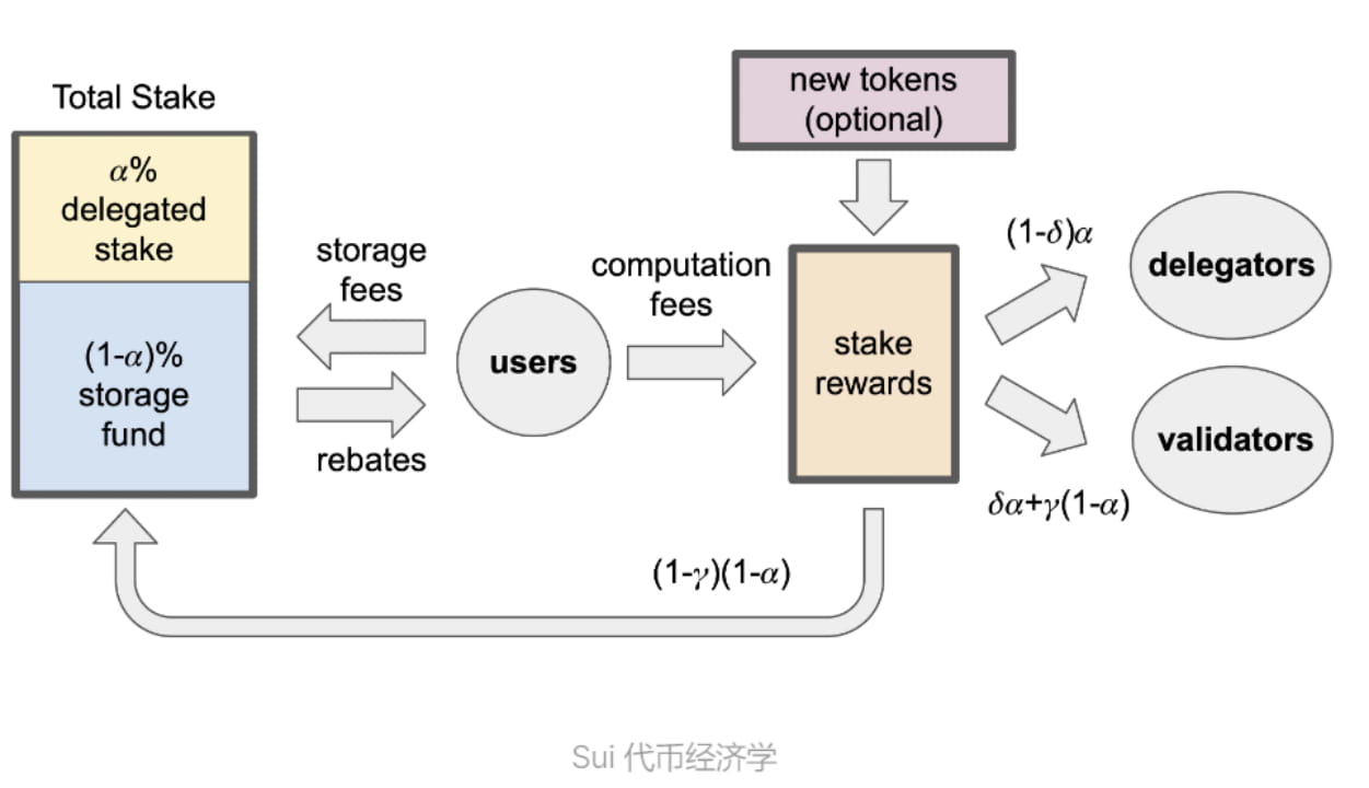 В отличие от модели экономики токенов традиционных цепочек с доказательством доли, модель экономики токенов Суи добавляет функцию средств хранения. Поскольку блокчейн представляет собой структуру данных, которая только увеличивается, но никогда не уменьшается, с течением времени в цепочке необходимо будет хранить все больше и больше данных, и стоимость соответственно увеличится. Это приведет к тому, что пользователи будут использовать Sui в более поздний период. приходится платить больше, чем на ранней стадии. Для решения этой проблемы был создан фонд хранения, позволяющий ранним пользователям платить больше, чтобы все пользователи могли использовать сеть на основе одинаковых уровней оплаты.