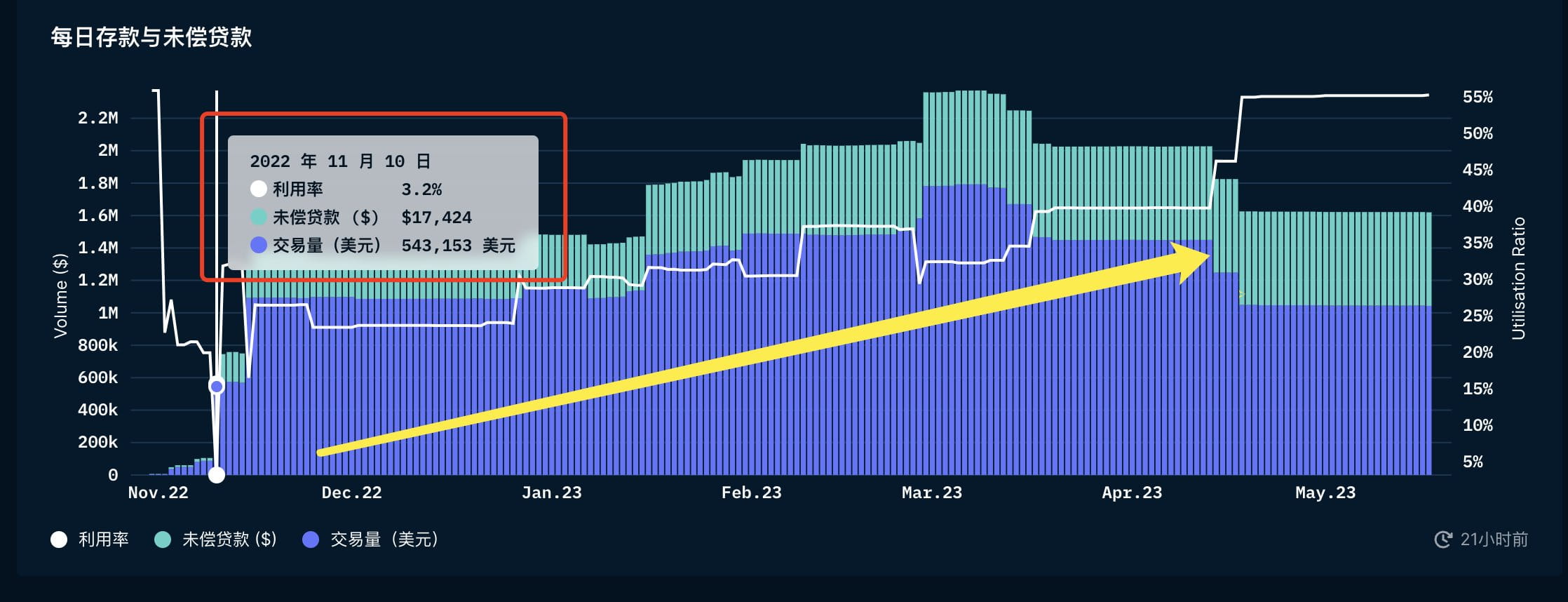 9. Данные о кредитовании. Данные по онлайн-кредитованию также являются интересным индикатором. Хотя проверяемость данных не уверена, поскольку после проверки кажется, что объем данных несколько занижен. Но ссылка все еще очень сильна. Сущность кредитования – это процесс увеличения кредитного плеча, который косвенно отражает настроения и ожидания рынка. После 10 ноября 2022 года возник определенный дефицит позиций, и данные по кредитованию упали до точки замерзания. Позже он постепенно поднялся, как и цена валюты.