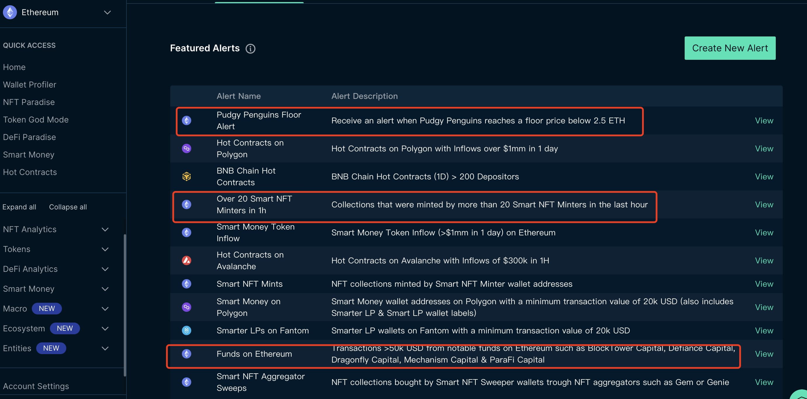 Оповещения можно настроить. Содержит 8 публичных сетей, включая TOKEN и NFT, которые можно выбрать самостоятельно. Основная функция: вы можете добавить адрес кошелька умных денег. Кроме того, многочисленные индикаторы меток и суммы на @nansen_ai также могут использоваться в качестве одной из категорий фильтрации. Очень выбираемый и работоспособный. Оповещения также можно подключить к TG и DC для облегчения работы сообщества.