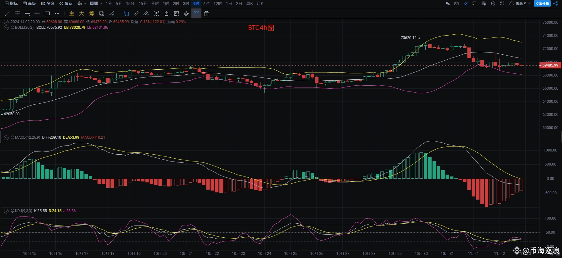 币海逐浪:11.2比特币(BTC)行情分析参考: