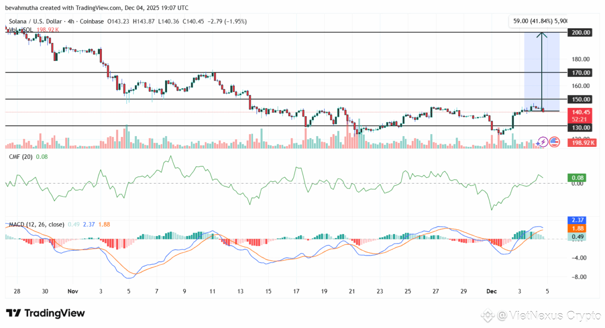 The latest SOL price traded at $142 as of December 4, 2025, reflecting a 2% increase. The cryptocurrency has shown signs of potential price movement.