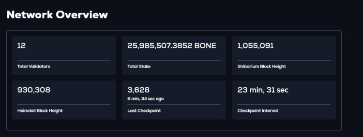According to trackers, Shibs of the Round Table and Burn Baby Burn are the top validators. In total, 25.9 million BONE have been staked, with blocks being confirmed on the Ethereum mainnet roughly every 23 minutes.