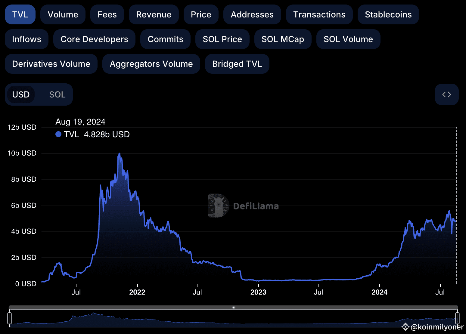 There are cryptocurrency assets locked in Solana that are getting near to $5 billion in worth, according to data from DeFiLlama. You can see that TVL is worth $4.82 billion as of August 19th in the graphic below. From the start of 2024 forward, TVL saw profits thrice.