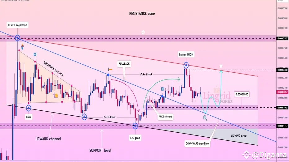 We expect the price to retest the downward trendline and then continue its upward move towards the resistance zone around 0.00002280. This could be a great opportunity for traders to buy the dip and ride the next wave of bullish momentum.