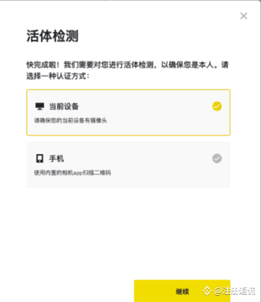 系统会要求您完成活体检测,您可以选择使用当前设备或手机进行验证。