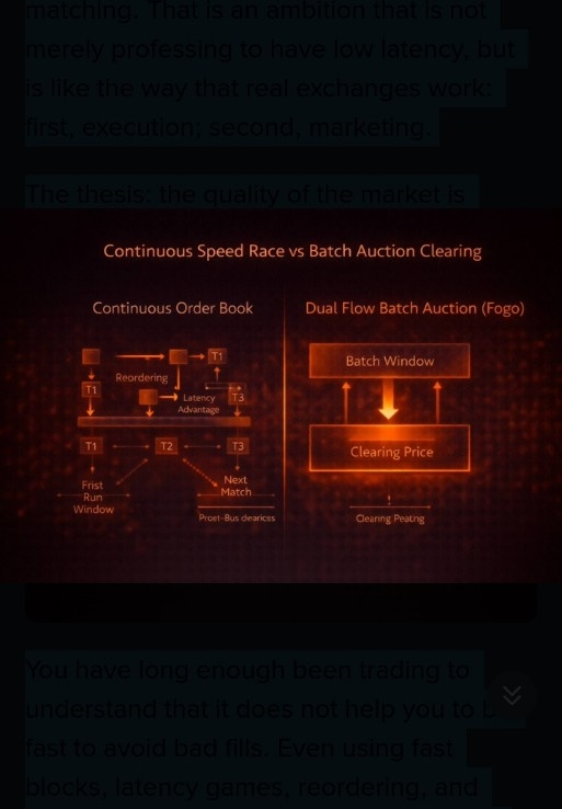 What I am trying to say is this; speed is not the objective of Fogo. It is intended to ensure that on-chain trading is more equitable and clean by transforming trade matching. That is an ambition that is not merely professing to have low latency, but is like the way that real exchanges work: first, execution; second, marketing.