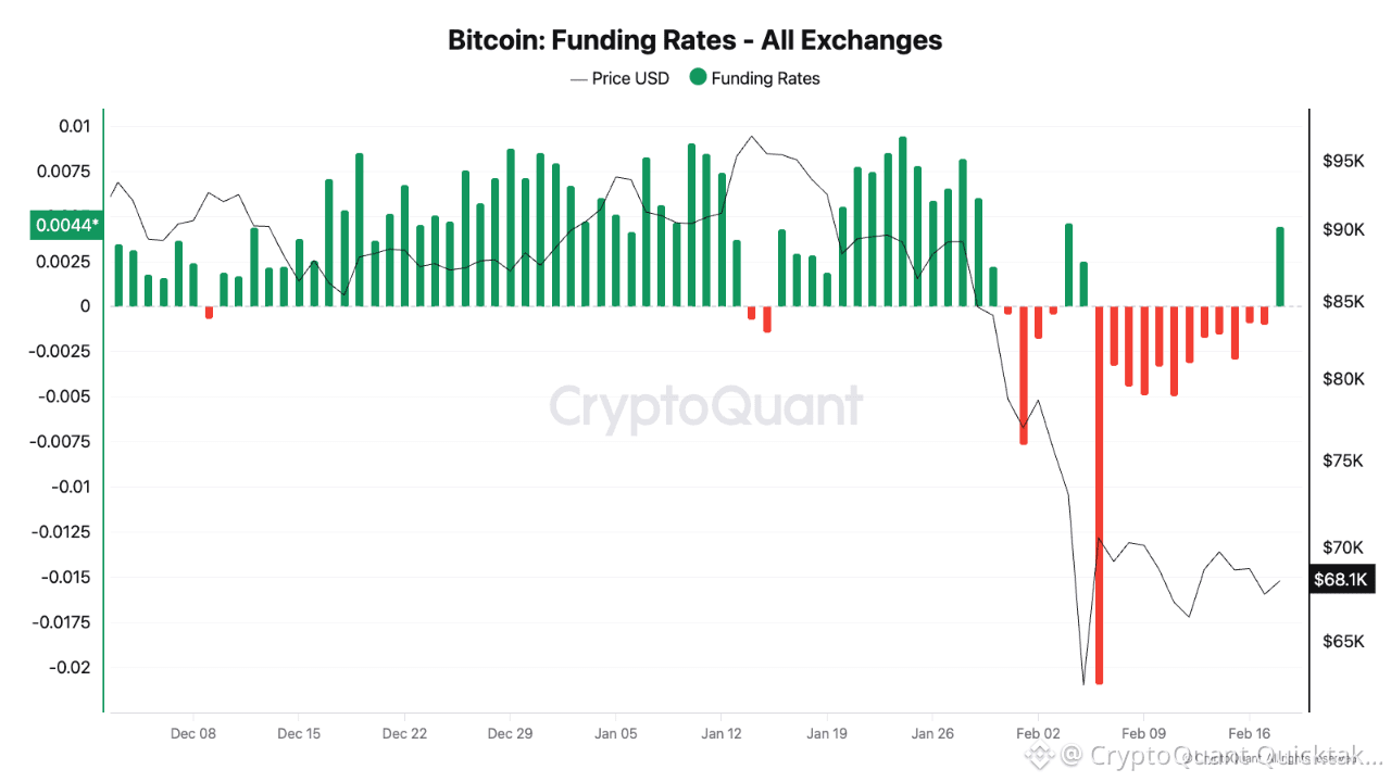 After two weeks of negative funding rates, we finally saw a flip to +0.0044%. While this looks like bulls reclaiming $68,000, the Open Interest (OI) reveals a different motive:
