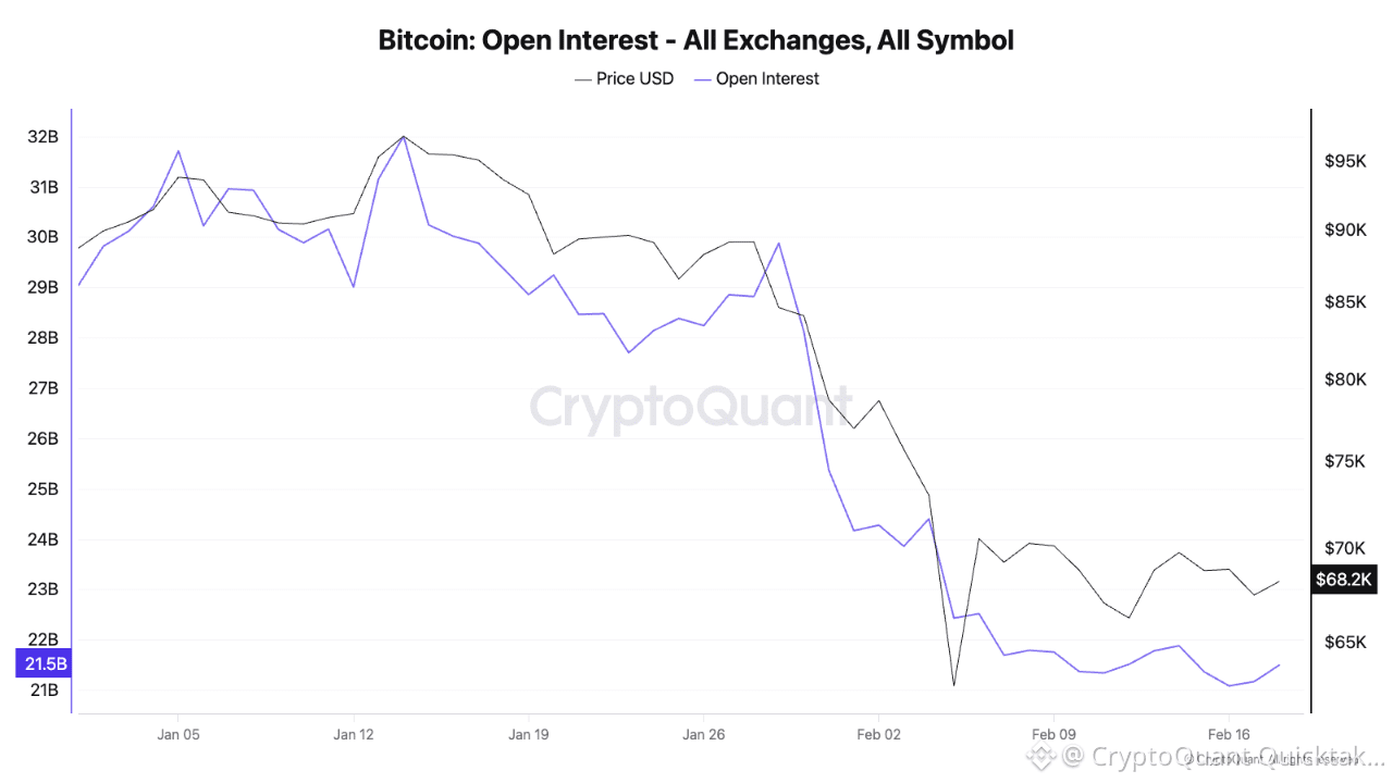 The Divergence: As price edged up, total OI plummeted from $32B to $21.5B.