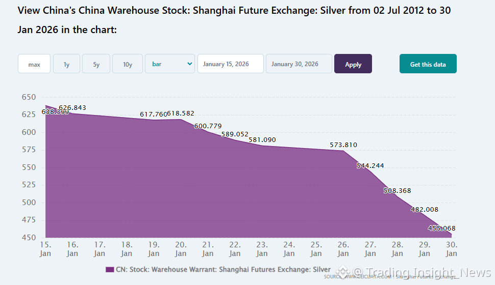 🔸The supply of physical $XAG held on the Shanghai Futures Exchange (SHFE) has been steadily declining. Specifically, the figure has fallen from 482 tonnes to 455.06 tonnes.