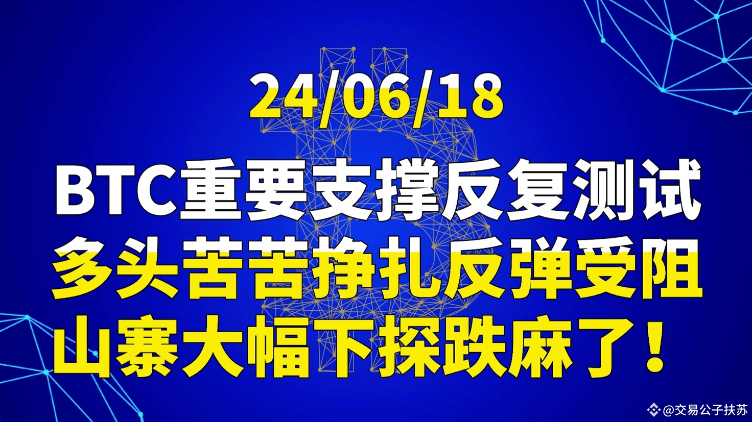 24/06/18BTC重要支撑反复测试,多头苦苦挣扎反弹受阻,山寨大幅下探跌麻了!