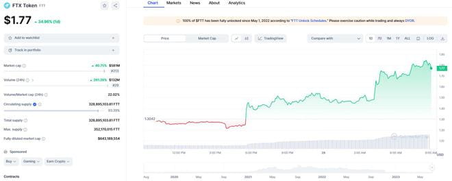 消息传出后,FTT平台比涨破40%,随后微幅回落,周四亚市报在1.78美元。