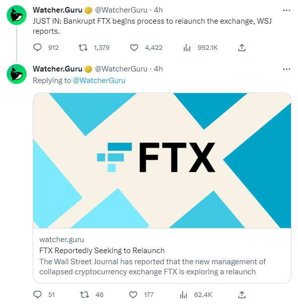 “FTX在任何重新启动时都需要进行品牌重塑,此外,它还表示希望现有用户能够参与重新推出的内容。FTX还需要回答监管合规问题,”Watcher.Guru报道提到。