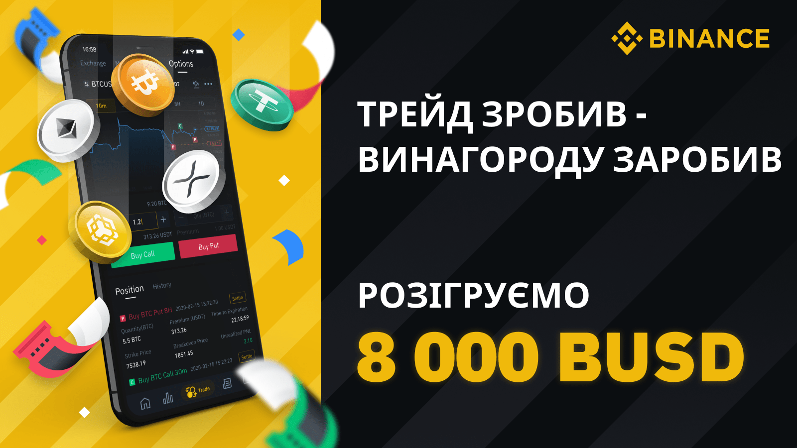 Ми знаємо, як ти довго на це чекав, тому з радістю анонсуємо Торгове змагання! З тебе трейд - з нас круті винагороди! Торгуй від 200$ на споті або від 500$ на ф’ючерсах протягом періоду промо та розділи 8 000 BUSD у винагородах.