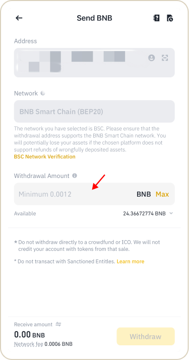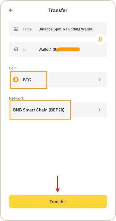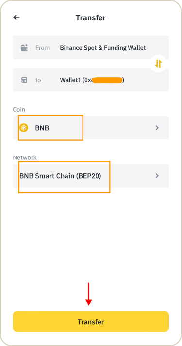 B17: Đến mục "Transfer". Bạn sẽ gửi BNB tới ví Web3 của mình. Xin lưu ý rằng bạn sẽ có thể chuyển BNB trở lại ví giao ngay của mình trong ứng dụng Binance bất cứ lúc nào.