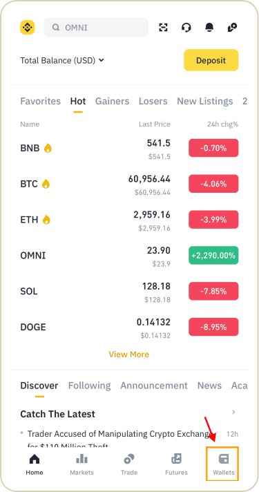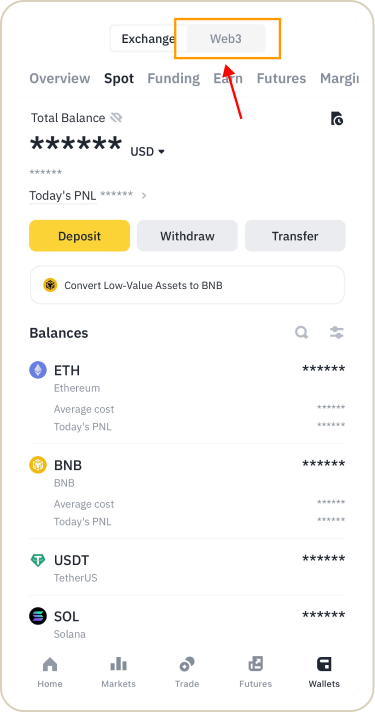 B13: Chuyển đến trang chủ ví Binance Web3 của bạn (bạn có thể chuyển sang bước 20 nếu bạn đã có BNB trên ví Web3 của mình). BNB là cần thiết để trang trải chi phí phí mạng.