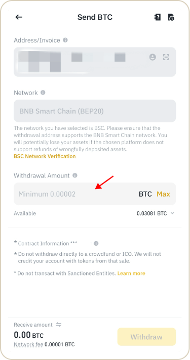 B11: Nhập số tiền bạn muốn rút. Để tham gia airdrop, bạn phải stake 0,0001 BTC, và đừng quên về khoản phí cần trả khi rút nữa nhé!