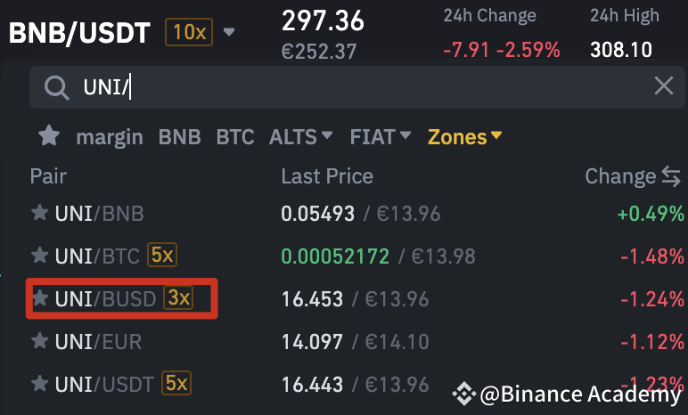 Trong thanh tìm kiếm, nhập cặp bạn đã chọn. Trong ví dụ này, chúng ta chọn UNI/BUSD.