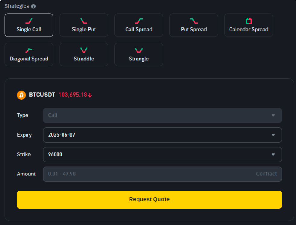 Trong cuộc tìm kiếm của mình, tôi nhận thấy rằng Binance Options RFQ không chỉ dành cho các tổ chức lớn. Các nhà giao dịch bán lẻ có kinh nghiệm cũng có thể sử dụng nó để quản lý rủi ro tốt hơn và tránh những biến động giá không cần thiết. Nền tảng hỗ trợ các chiến lược quyền chọn khác nhau để các nhà giao dịch có thể phù hợp với quan điểm thị trường của họ với mức độ thoải mái về rủi ro.