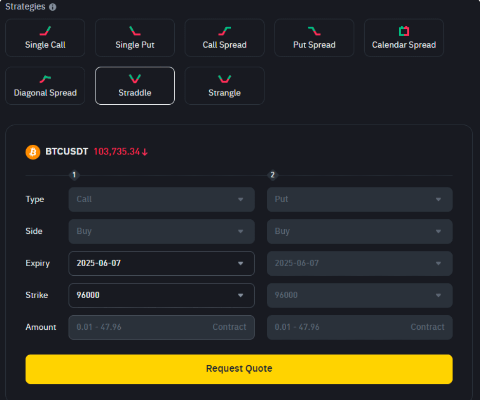 Sau khi nghiên cứu RFQ quyền chọn Binance, tôi hiểu rằng nó được xây dựng để kiểm soát rủi ro thông minh. Những chiến lược này giúp các nhà giao dịch định hình ý tưởng của họ một cách rõ ràng mà không phải đoán. Dù ai đó mong đợi sự tăng trưởng, giảm sút, hoặc chuyển động mạnh mẽ, nền tảng cung cấp những cách có cấu trúc để giao dịch.