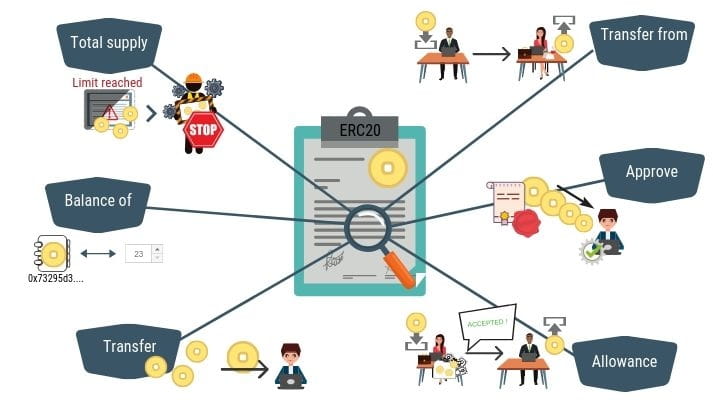Hợp đồng thông minh kích hoạt các chức năng này được coi là hợp đồng ERC20.