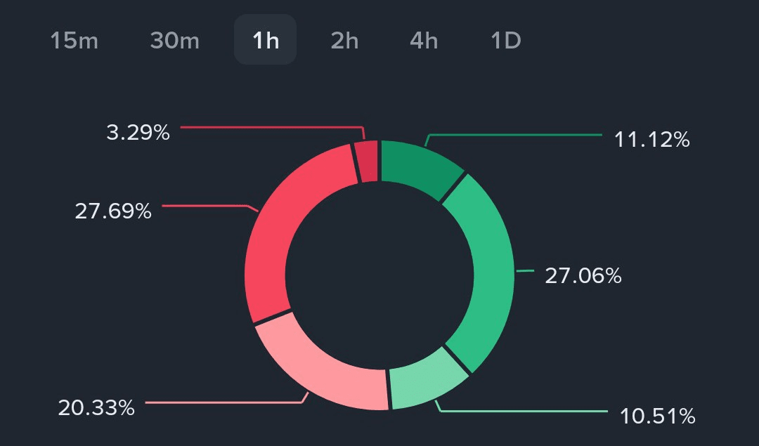 在这一部分,买入和卖出几乎相等,略微偏向卖出。这反映出交易者可能在等待更多信息或进行短期调整的中性到谨慎的前景。