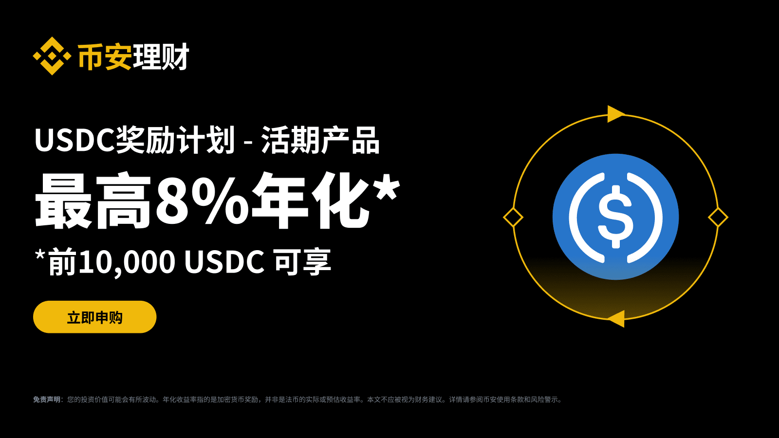 实时年化收益以及额外分级年化收益来源为币安自有资金,发放金额将根据对当前市场状况的评估和评价而定。本活动与USDC发行方无关。