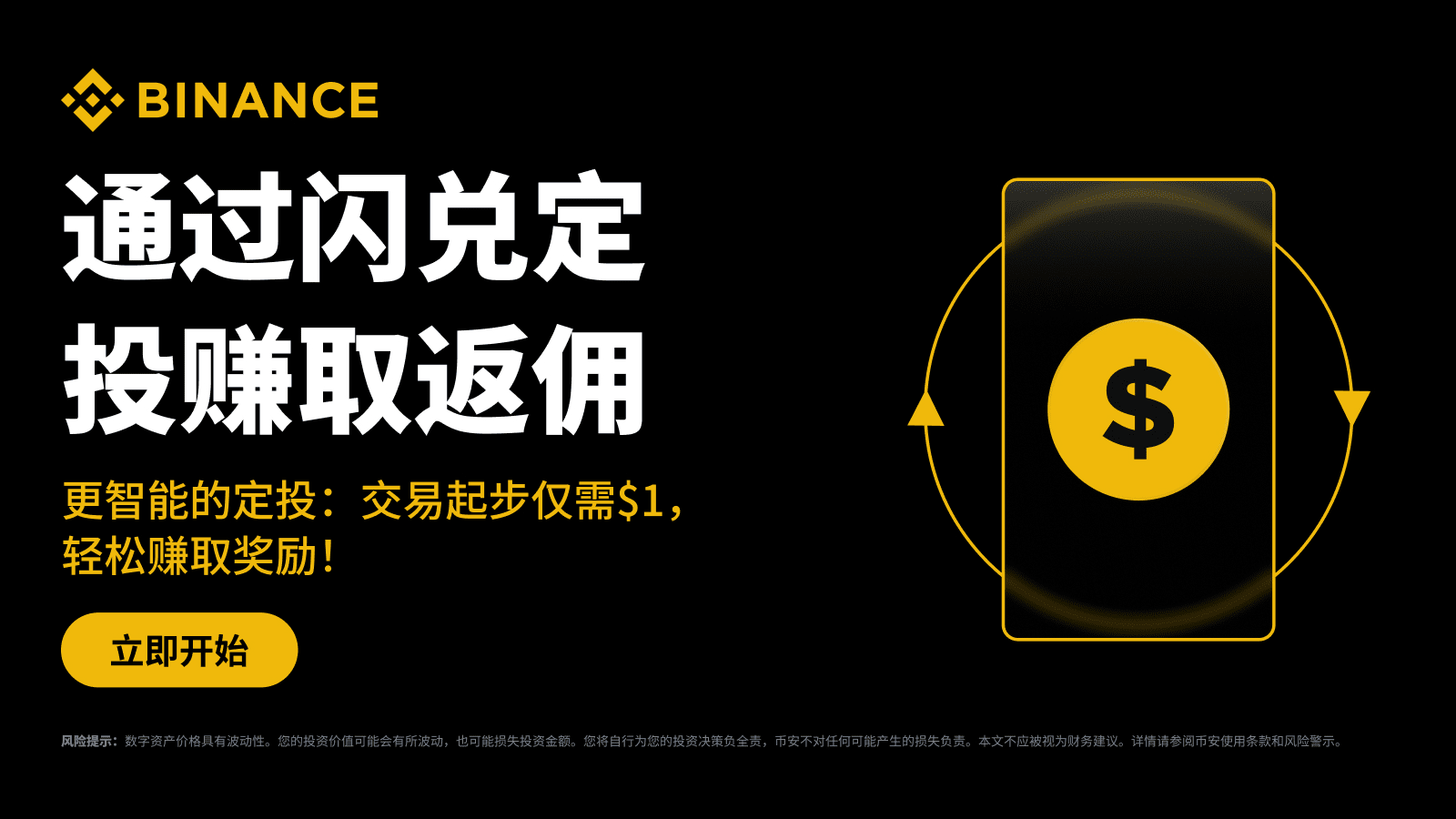 币安闪兑定投返利计划将于2025年10月23日08:00(东八区时间)开始,直至另行通知;