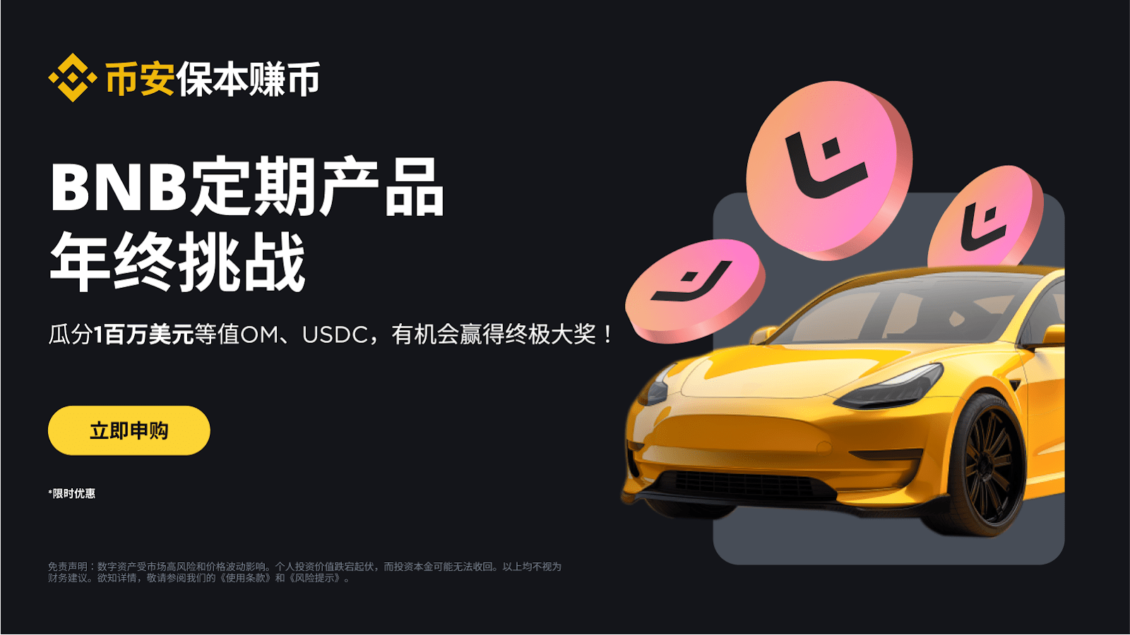 币安将以2024年12月10日所确定的估值,将一辆高级电动汽车的一般市场参考价格订为50,000美元,然后以等值的USDC代币券分发奖励给获选用户。该奖励不包含税金、运费或任何其他额外手续费;