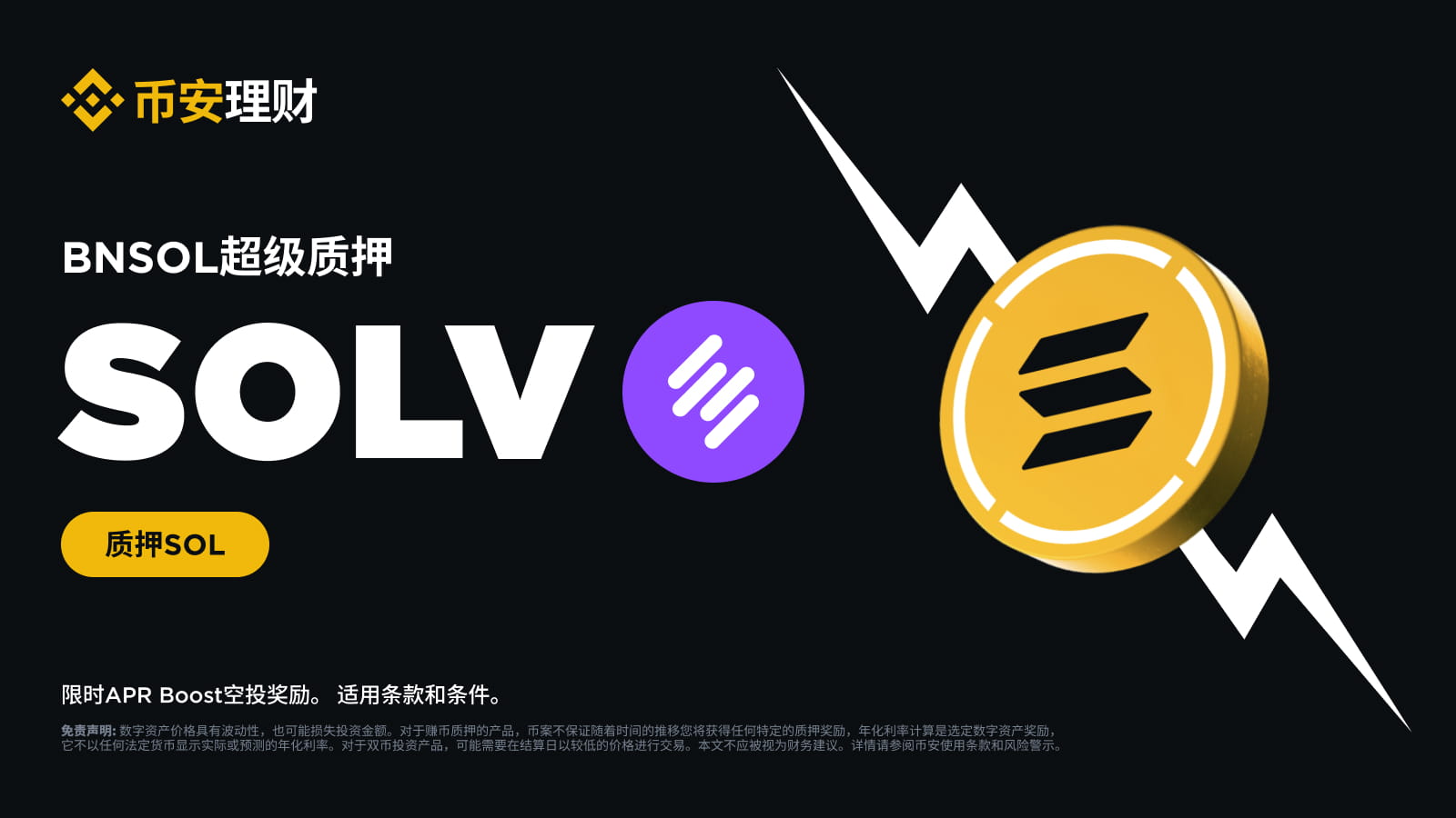 SOLV APR Boost空投奖励是在币安SOL质押基础年化利率之上,提供的额外代币空投,为用户提供更高的收益率。