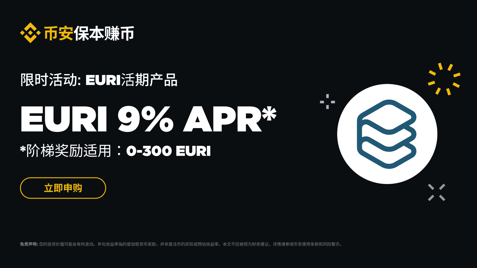 实时年化收益以及额外分级年化收益来源为币安自有资金,发放金额将根据对当前市场状况的评估和评价而定。本活动与EURI发行方无关。