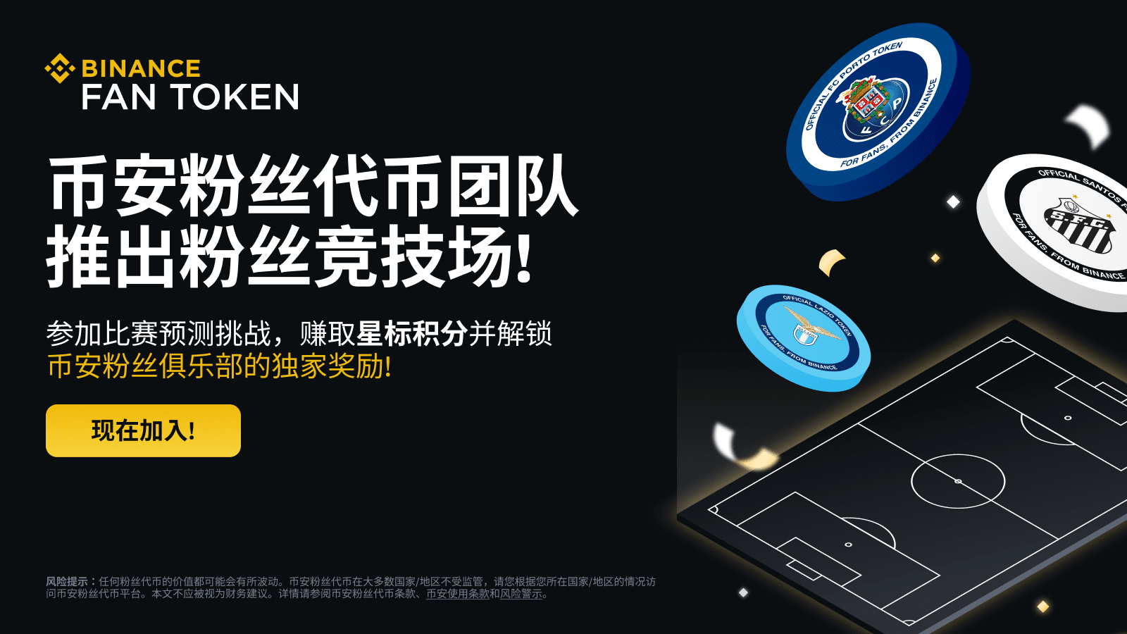 自2023年11月20日18:00(东八区时间)起,球迷可以在粉丝竞技场展示其体育知识,并预测喜爱的球队赛事。邀您参与粉丝竞技场比赛预测挑战,以赚取星标积分,并在币安粉丝俱乐部解锁独家粉丝特权!