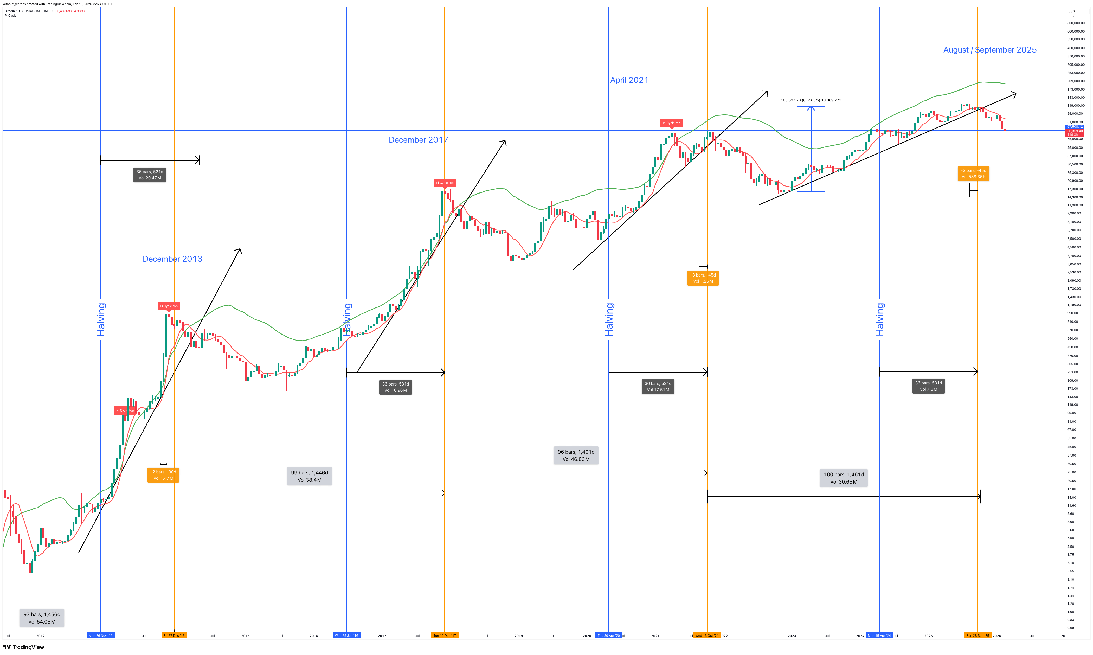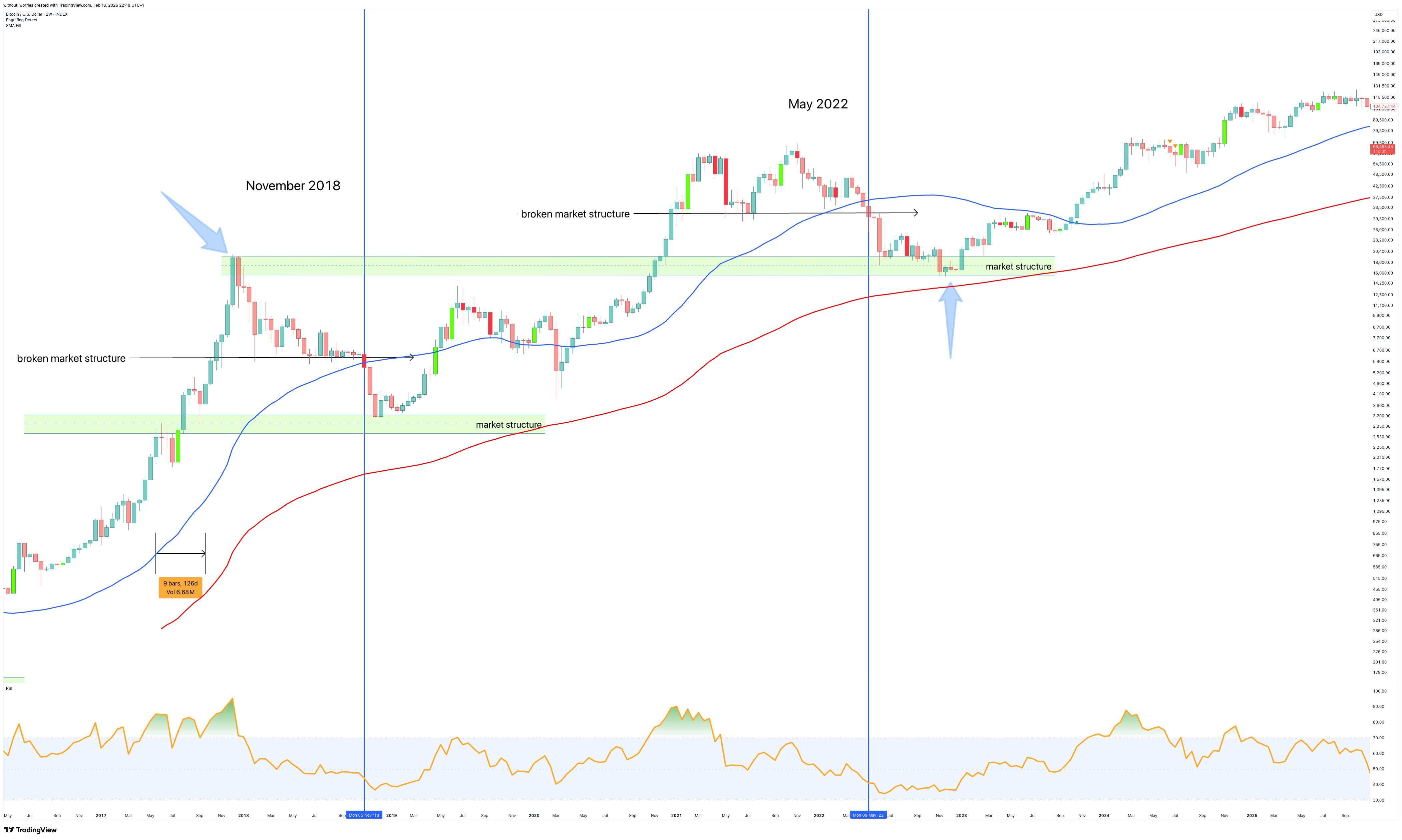 標題無須贅述,意見領袖們信誓旦旦,而未經證實的消息則無人再提及。歷史告訴我們,接下來將是100-200天的盤整,跌幅達50%。 2026年的多頭行情已成泡影。