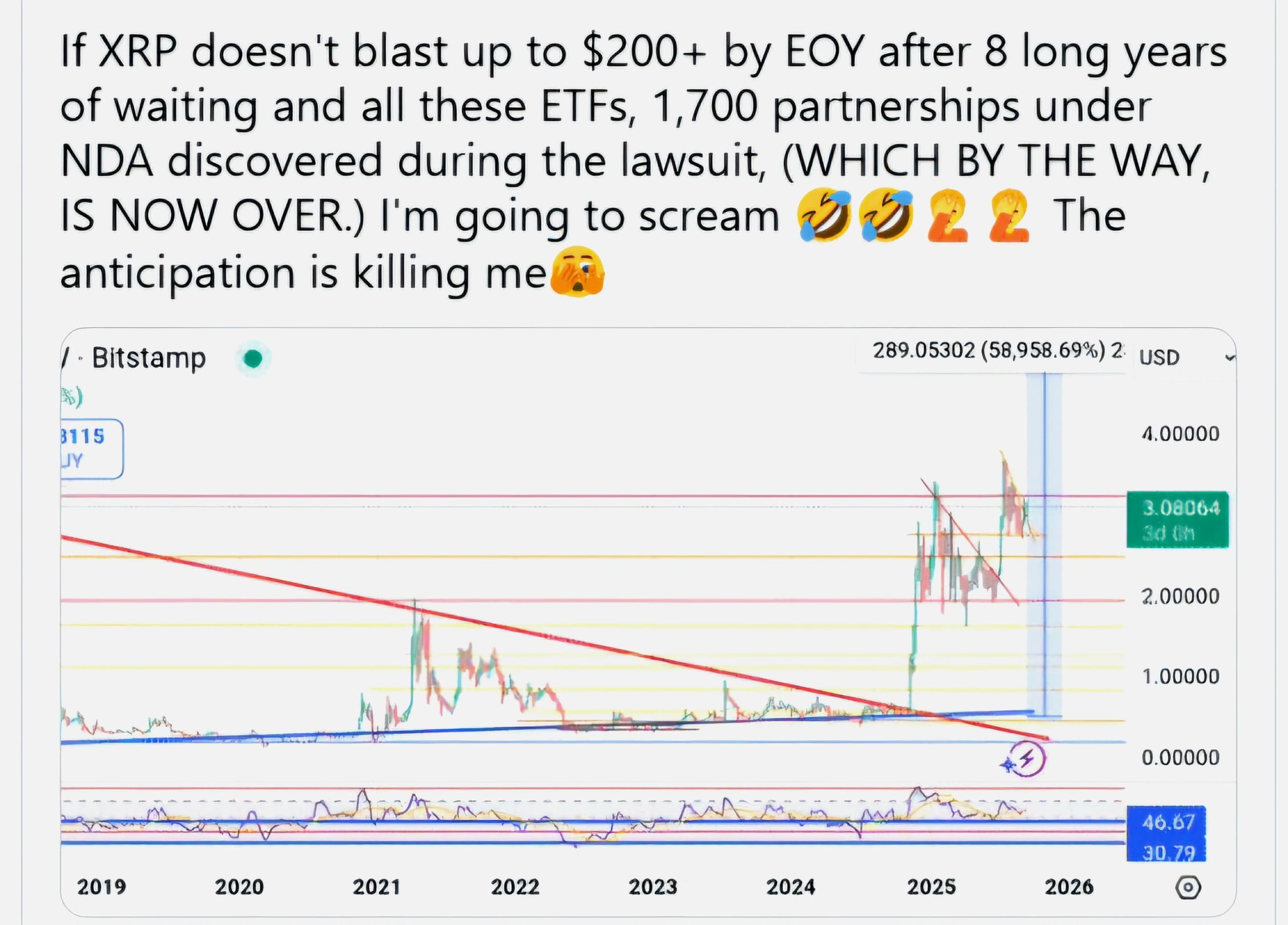 $XRP 加密貨幣支持者斯特芬妮·斯塔爾最近在X上宣稱,XRP在年底之前應該超過200美元。