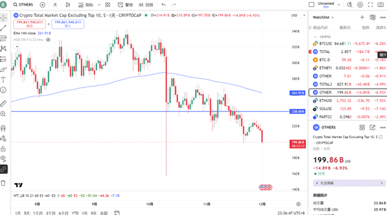剔除市值前10的山寨幣總市值日線圖,日線延續下跌趨勢。