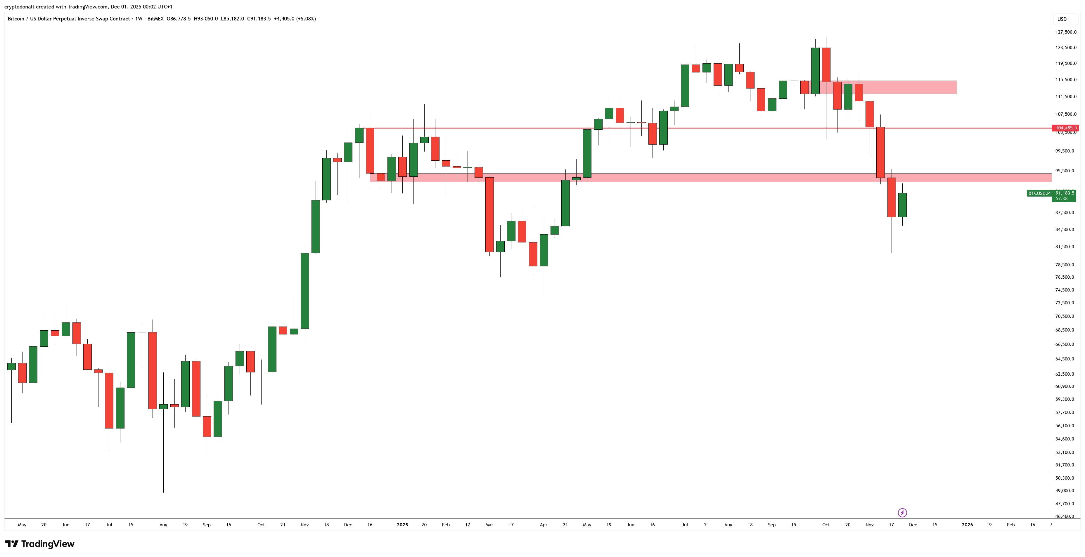 我在 110k 開始看空、84k 轉向看多之後,現在在 91k 我又開始偏空了。